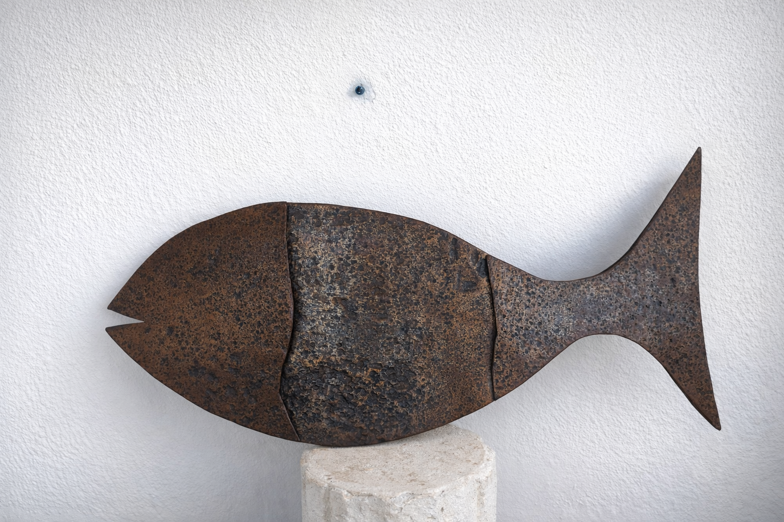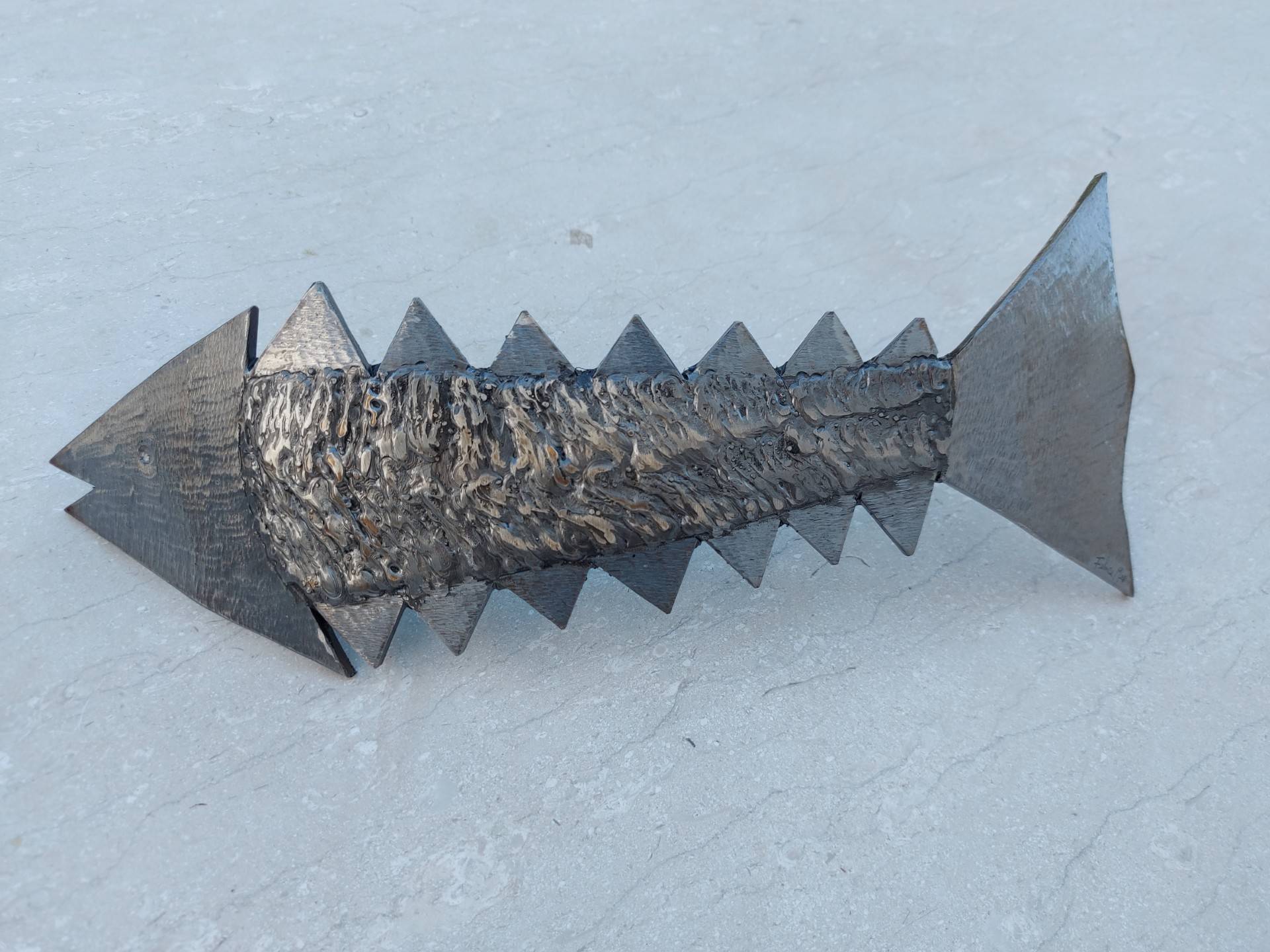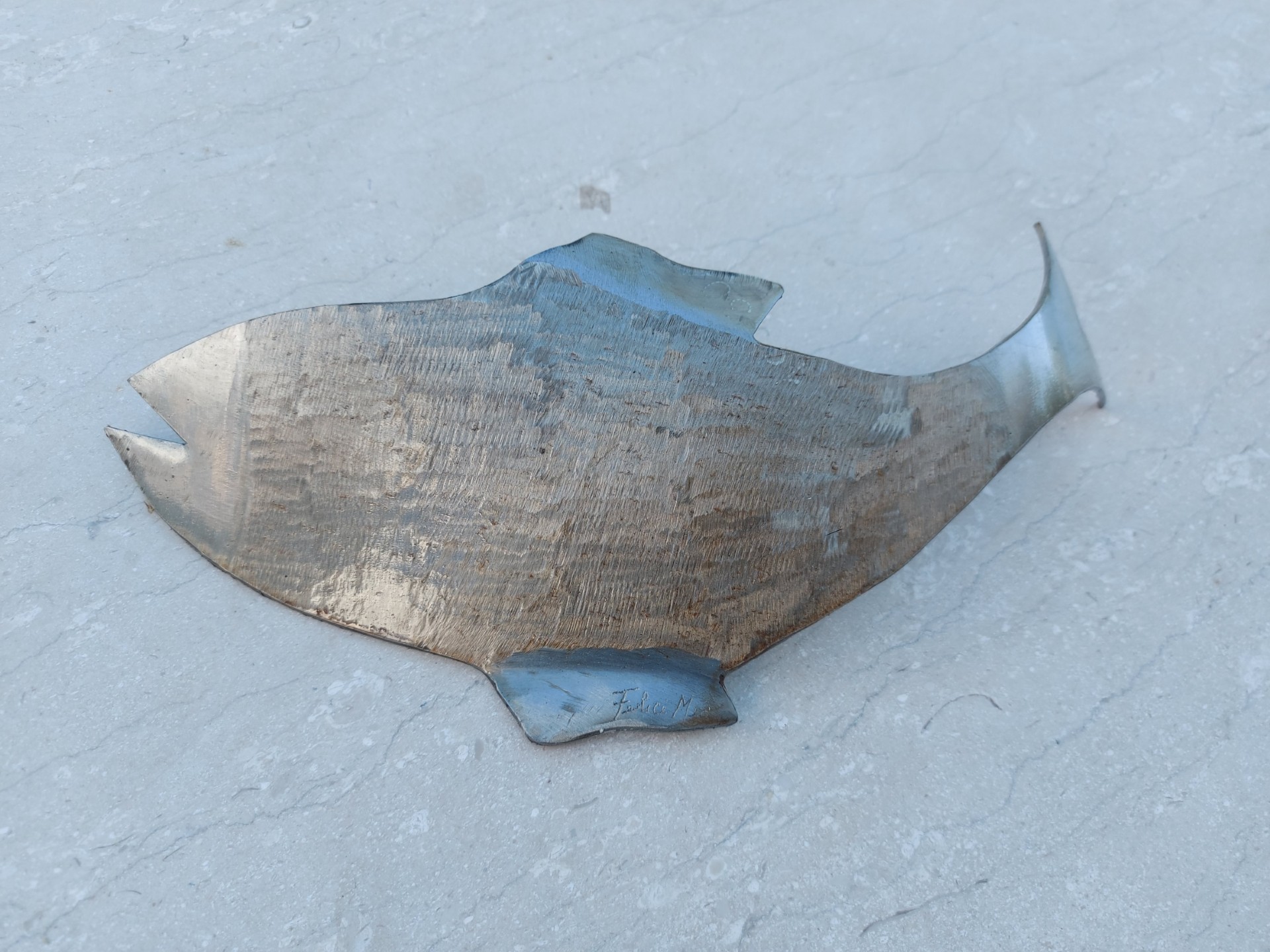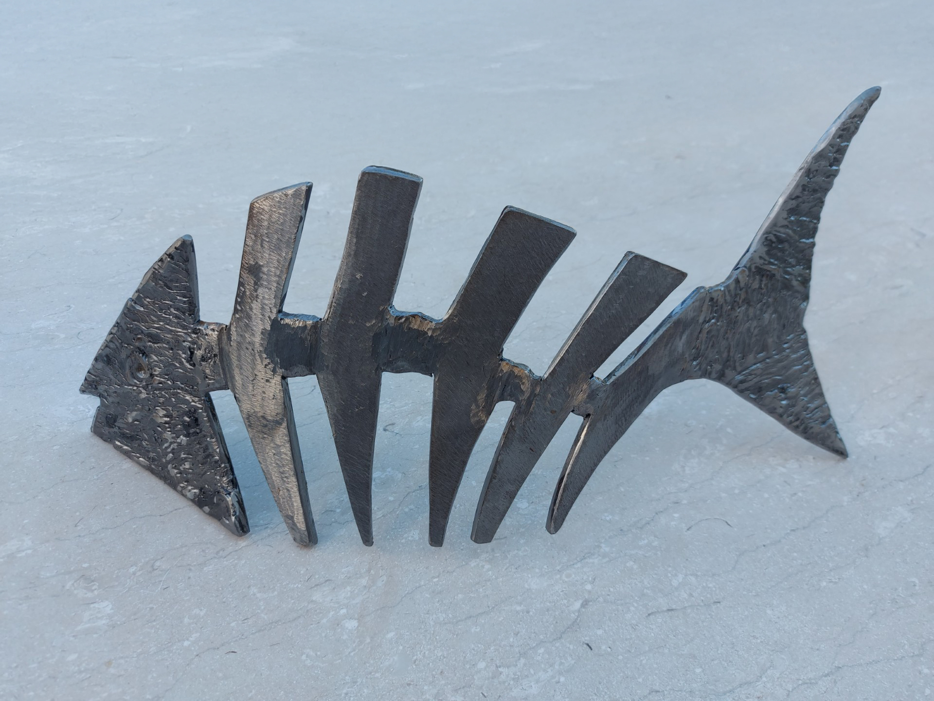 Il mare è presenza costante, imprescindibile, soprattutto per chi vive l’isola come radice e destino. In queste opere prende forma un dialogo intimo tra materia e sentimento: il ferro riciclato, segnato dal tempo e dall’uso, viene trasformato in scultura attraverso un gesto sapiente e istintivo, capace di restituire movimento, respiro, vita. Nulla è statico, nulla è definitivo, proprio come il mare stesso.